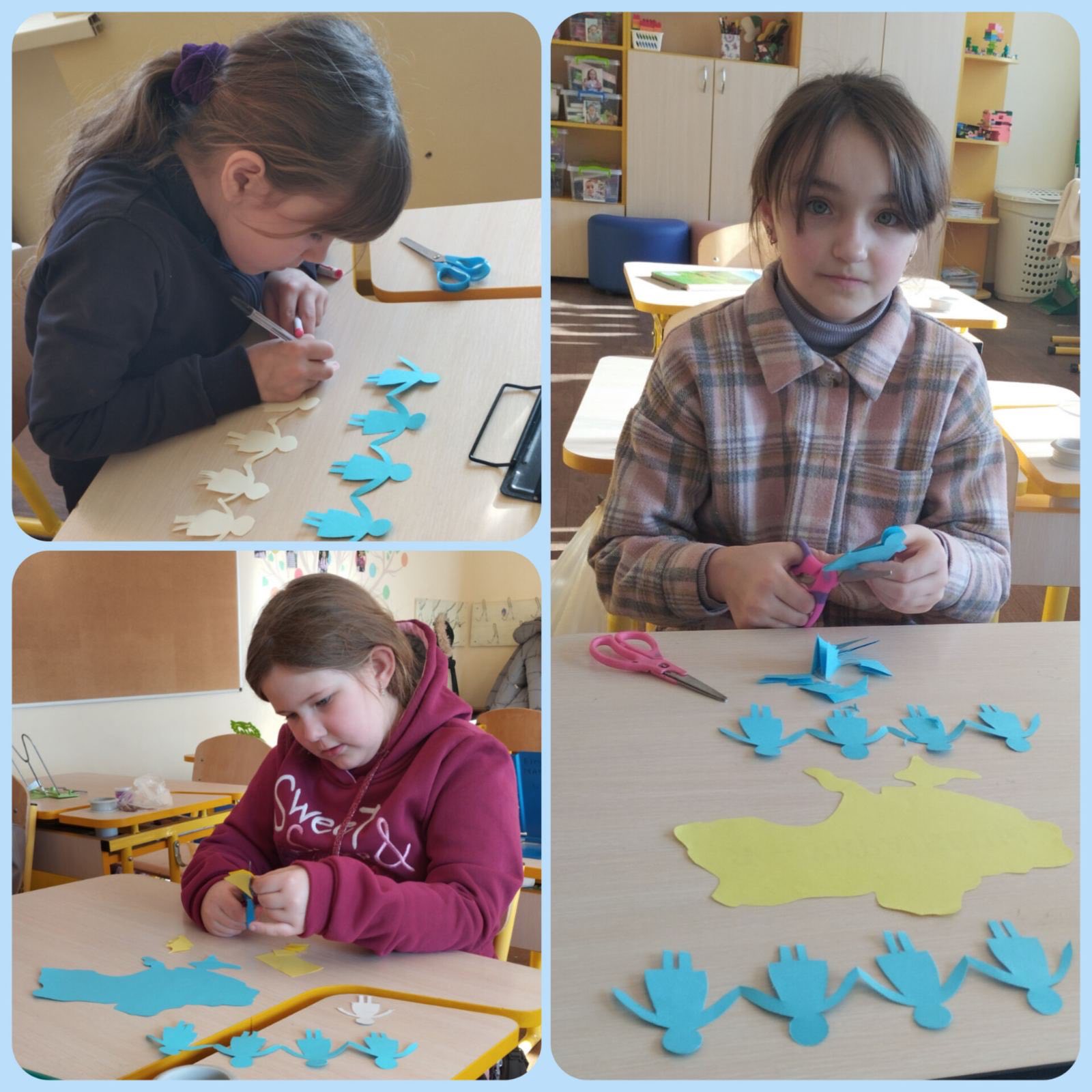 Вихованці гуртка «Оберіг» сьогодні вирізали патріотичні аплікації до Дня Соборності України. Керівник Олена Хайнюк.