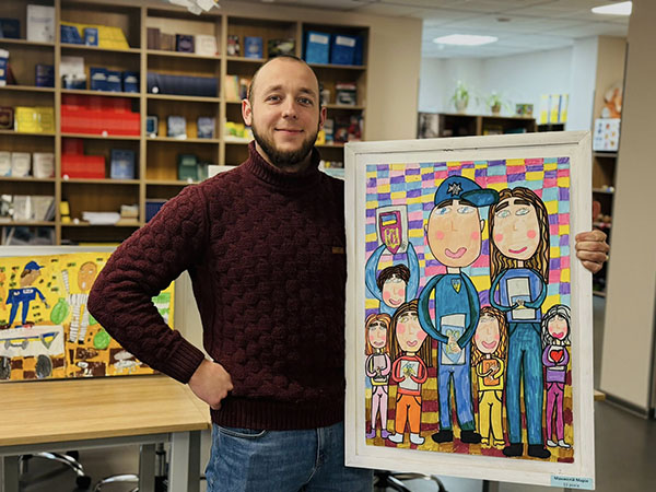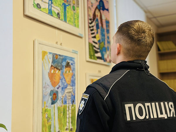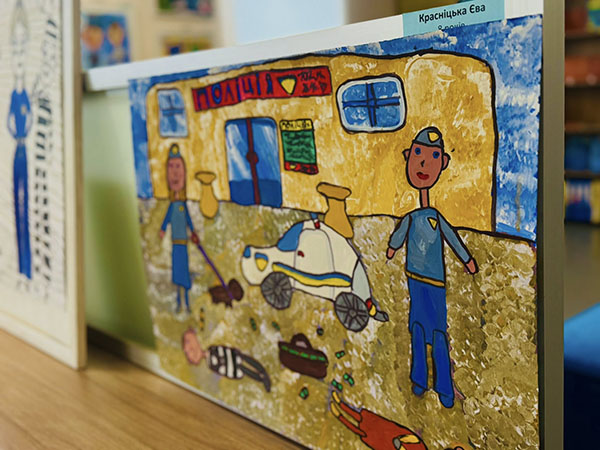 На картинах нової виставки – патрульні, службові автомобілі, приборкане зло і оточені турботою діти в безпечному місті. Зворушує портретна схожість зображень працівників Академії патрульної поліції та впізнаваність локацій навчального закладу. Кожна робота – це дитячий погляд на професію, наповнений довірою, світлом і вірою в справедливість. Особливо цінно, що ці образи створені дитячими серцями, без шаблонів і стереотипів – щиро, відкрито, по-справжньому. Діти бачать поліцію очима надії, добра і вдячності.