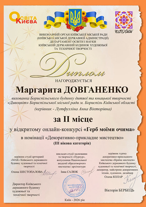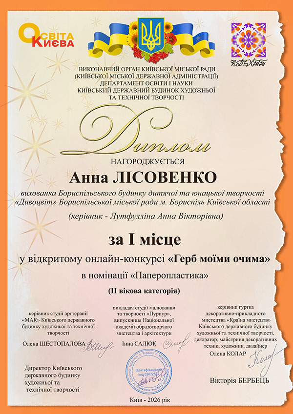 В день святкування Державного Герба вихованці взяли участь в відкритому онлайн конкурсі «Герб моїми очима-2026». Вітаємо з перемогою!