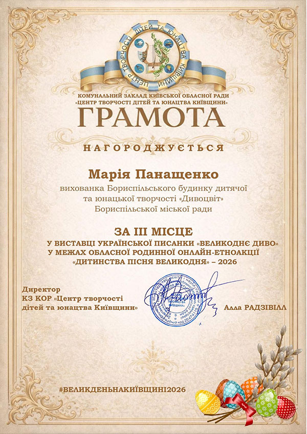 - Панащенко Марія - 3 місце;