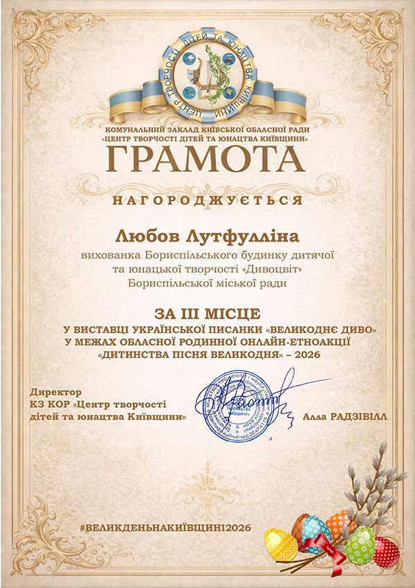 - Лутфулліна Любов - 3 місце;