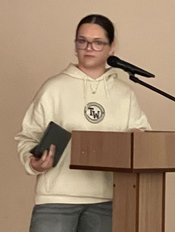 Лідери з різних навчальних закладів підготували цікаві історії про захист нашої Київської області. Першою взяла слово учениця Бориспільського академічного ліцею Руслана Лесів, яка представила особисті фото літаків з аеропорту в Гостомелі та розповіла про перші дні боїв на цьому напрямі.
