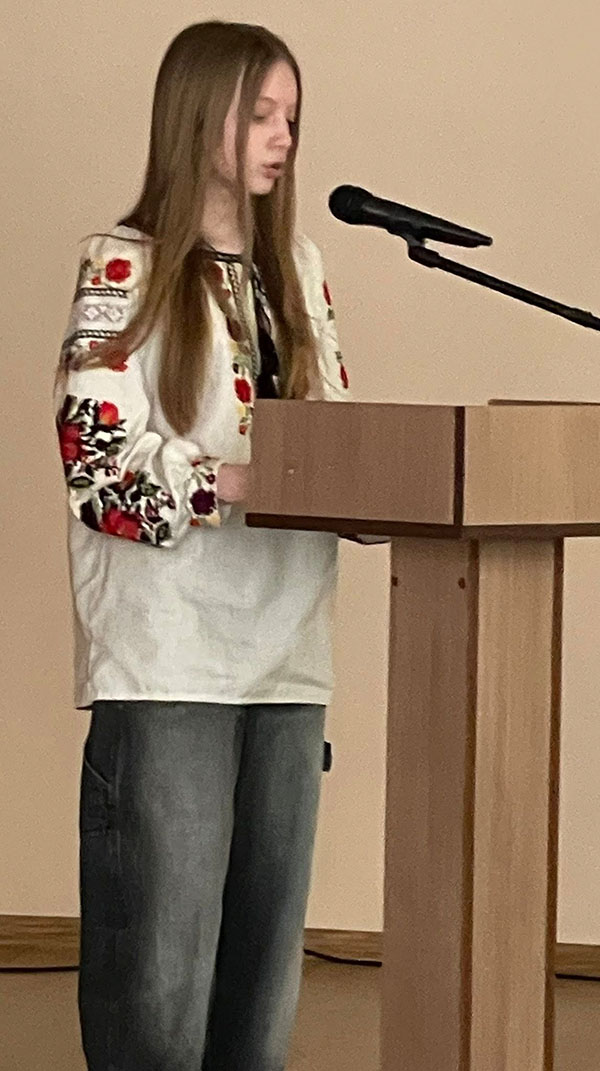 Федорченко Поліна, теж учениця ліцею «Лідер», приготувала історію про свою маму та хрещену, які з перших днів війни були волонтерками у центрі «Перемога», де організовували поміч військовим, хворим та безпомічним людям, покинутим тваринам.
