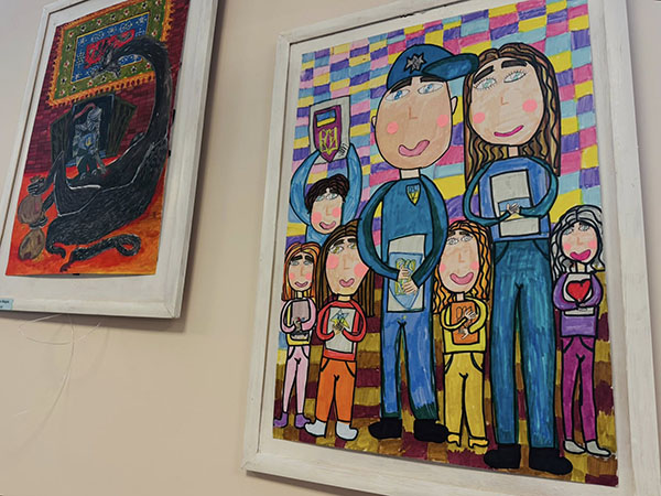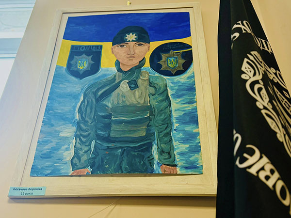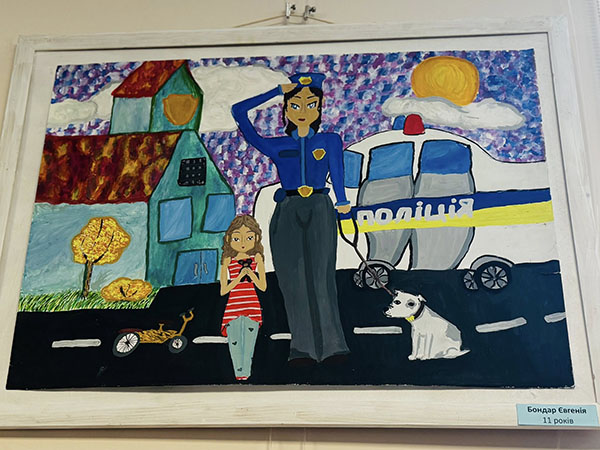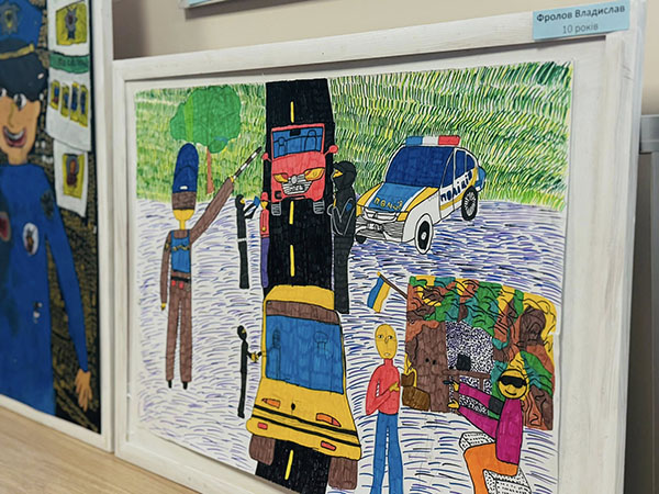 На картинах нової виставки – патрульні, службові автомобілі, приборкане зло і оточені турботою діти в безпечному місті. Зворушує портретна схожість зображень працівників Академії патрульної поліції та впізнаваність локацій навчального закладу. Кожна робота – це дитячий погляд на професію, наповнений довірою, світлом і вірою в справедливість. Особливо цінно, що ці образи створені дитячими серцями, без шаблонів і стереотипів – щиро, відкрито, по-справжньому. Діти бачать поліцію очима надії, добра і вдячності.