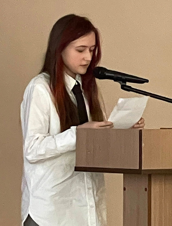 Лідери з різних навчальних закладів підготували цікаві історії про захист нашої Київської області. Першою взяла слово учениця Бориспільського академічного ліцею Руслана Лесів, яка представила особисті фото літаків з аеропорту в Гостомелі та розповіла про перші дні боїв на цьому напрямі.